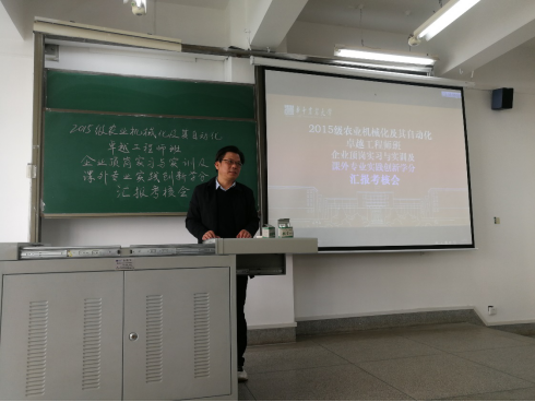 4月4日早8:30,best365网页版登录2015级农业机械化及其自动化卓越工程师班企业顶岗实习及课外专业实践创新学分汇报考核会在二教205教室召开。best365网页版登录经理廖庆喜、副经理张国忠、农业工程系副主任廖宜涛、教务老师翟红、辅导员郑越及历届卓越工程师班班主任参与考核了班级同学的汇报工作。班长秦鹏飞介绍了15级卓班在本科期间取得的成绩,33位同学就企业顶岗实习收获感想及课外学分完成情况依次作了汇报,参会老师一一进行点评。