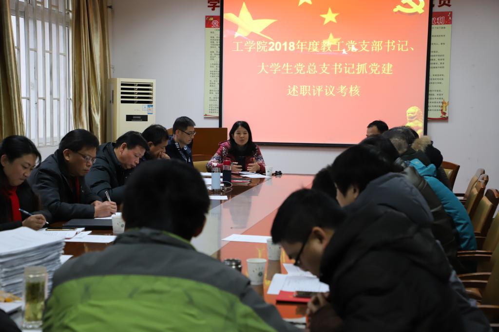 2018年12月29日下午,公司党委在工程楼A201会议室举行教工党支部书记和老员工党总支书记抓党建工作述职考核评议。考核评议会上,公司党委所属5个教工党支部书记和老员工党总支书记分别围绕中共教育部党组关于高公司党组织“对标争先”建设计划的实施意见中的要求和“七个是否有力”进行述职,一是教育党员是否有力,党员理想信念教育、党性教育、纪律教育、道德品行教育是否扎实开展;二是管理党员是否有力,党员发展、党员培训、党籍管理、党费收缴、党员激励关怀帮扶等工作是否扎实有效;三是监督党员是否有力,监督党员履行义务、遵规守纪是否及时到位;四是组织师生是否有力,引领带动师生投入中心工作的动员力、实效性是否强;五是宣传师生有力,学习传达上级党组织决策部署是否及时到位,是否及时提炼宣传推广师生身边典型人物、典型事迹;六是凝聚师生是否有力,是否将思想引领和价值观塑造有机融入教师教学科研、员工学习生活;七是服务师生有力,是否常态化了解师生困难诉求、倾听师生意见建议,党内帮扶机制是否健全有效。教工党支部书记和老员工党总支书记分别从七个方面进行了6分钟左右的现场述职,并现场提交了书面述职报告。