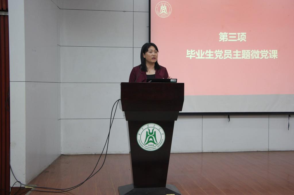 随后,党委副书记瞿明丽为毕业生党员带来主题党课。瞿明丽首先祝贺各位毕业生党员通过大学四年的努力奋斗,都顺利毕业并收获了好的发展,这令人十分欣喜。她表示,今年是中国共产党成立100周年,在座的毕业生党员要继续强化党史学习,学会从党史中寻经验、求规律、探未来,在先辈们的奋斗历程中“重走长征路”,切实做到学史明理、学史增信、学史崇德、学史力行,为自己的成长发展积累智慧、含蓄养分、鼓足动力。