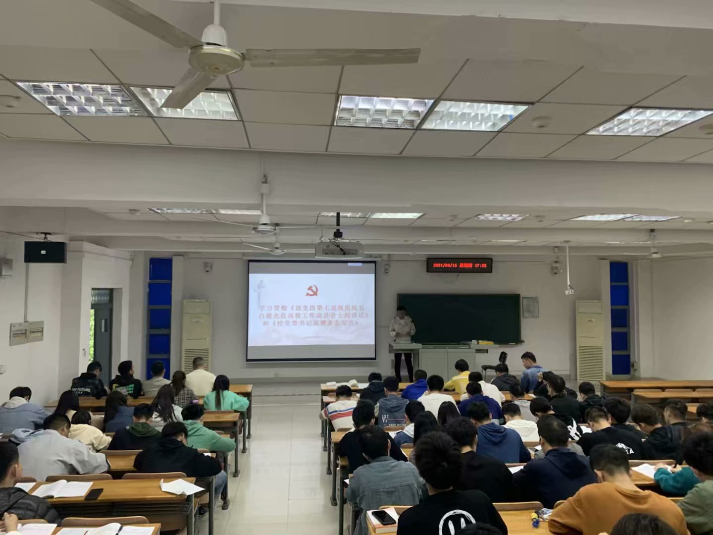 4月15日下午,best365网页版登录六个研究生党支部在三教A205集中开展4月份主题党日活动,农业机械化工程与装备研究生第一党支部书记、研究生辅导员王贤波主持会议,best365网页版登录全体研究生党员参加学习。