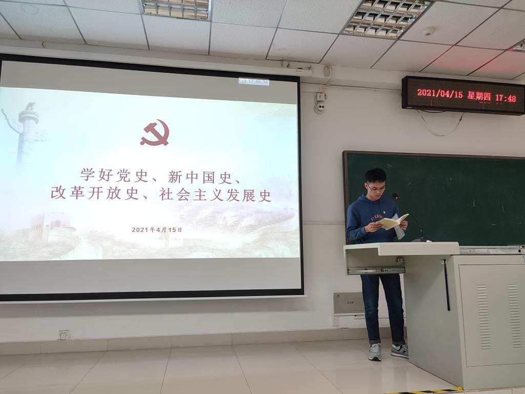农业生物环境与能源工程研究生第一党支部书记王岩同志与黄结、王宏波、朱恒、樊晨昕、邓宇玄、陈梦迪、鄢钱、胡建超等八名同志一起分段诵读了《论中国共产党历史》第158—163页习近平总书记有关学好党史、新中国史、改革开放史、社会主义发展史内容的节录。