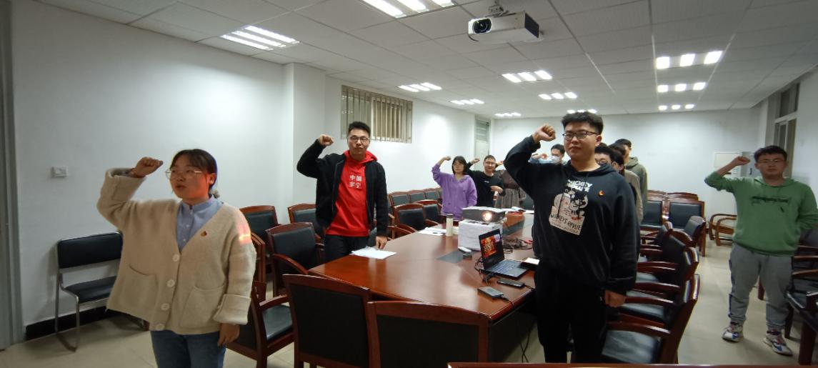 组织委员刘婷婷带领支部成员重温入党誓词