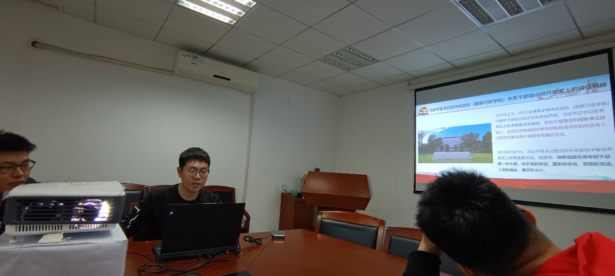 在领学结束后,支部成员展开了热烈讨论,支部成员任宗强表示:学习了陈宝生部长在党史学习教育动员大会上的讲话,作为员工党员的我感受颇多,我们要认真学习贯彻习近平总书记在党史学习教育动员大会上的重要讲话精神,提高政治站位,积极参与党史学习教育。迅速带动身边同学的加入学习热潮,准确把握党史学习教育的目标、内容和活动载体,扎实学习,充分发挥党员的先锋模范作用,以实际行动和优异成绩庆祝中国共产党成立100周年。